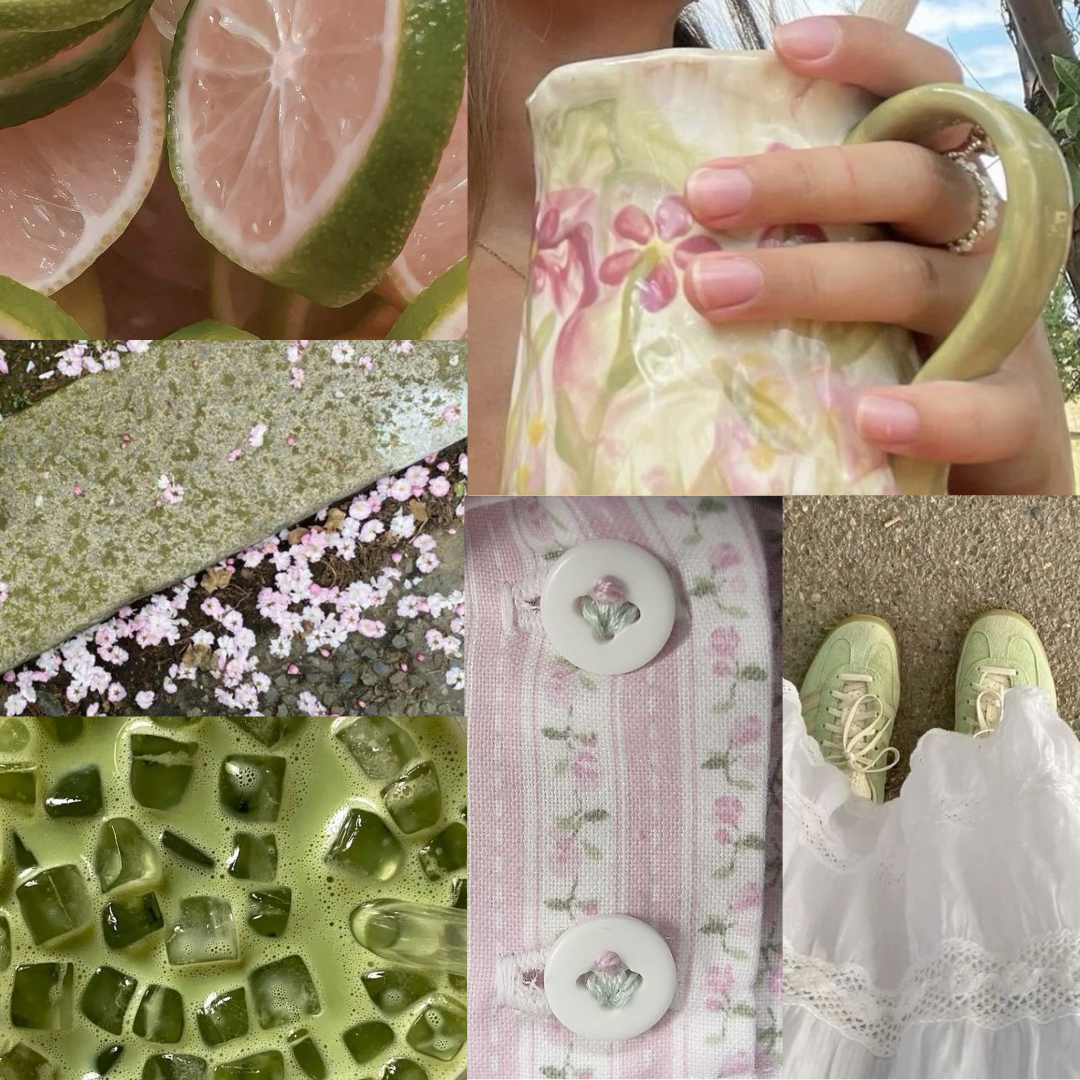 Base notes: matcha green, powder pink