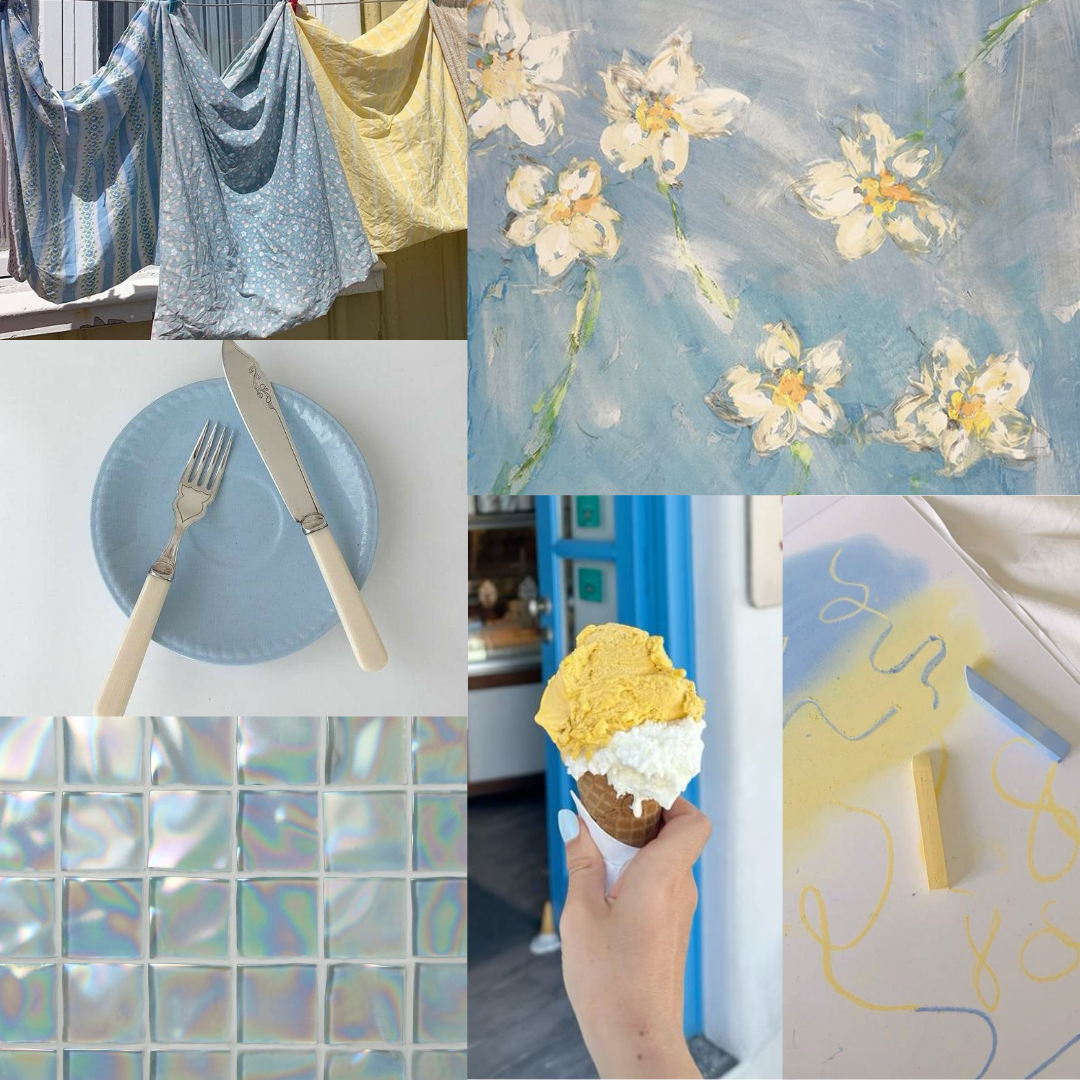 Base notes: baby blue, butter yellow